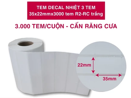 Đặt mua Cuộn decal nhiệt 3 tem 35x22mm x 3.000 tem R2-RC - Trắng